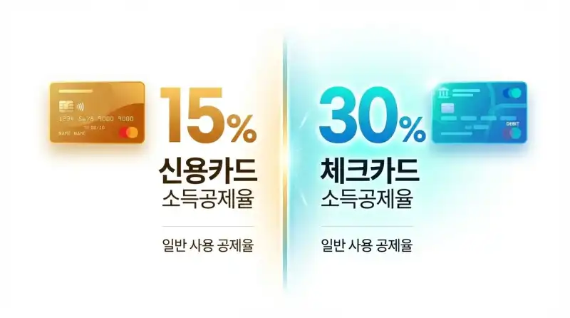 신용카드 15%, 체크카드·현금영수증 30%. 같은 100만 원을 써도 공제금액이 두 배 차이 나는데, 무조건 체크카드만 쓰면 될까요? 3년간 직접 비율을 바꿔가며 연말정산을 해본 결과, 답은 그렇게 단순하지 않았습니다.
